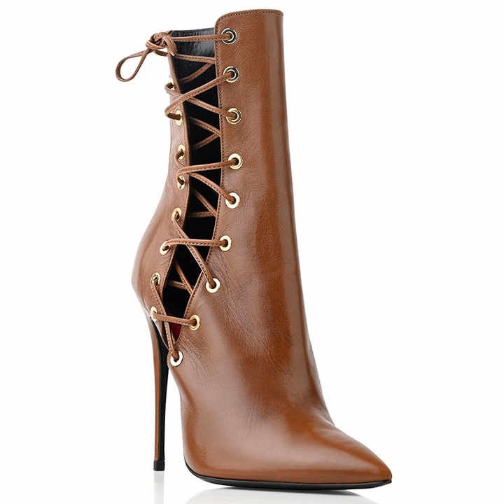 Bottes à talons hauts noirs, blancs et marrons pour femme, bottines d'hiver à bout pointu