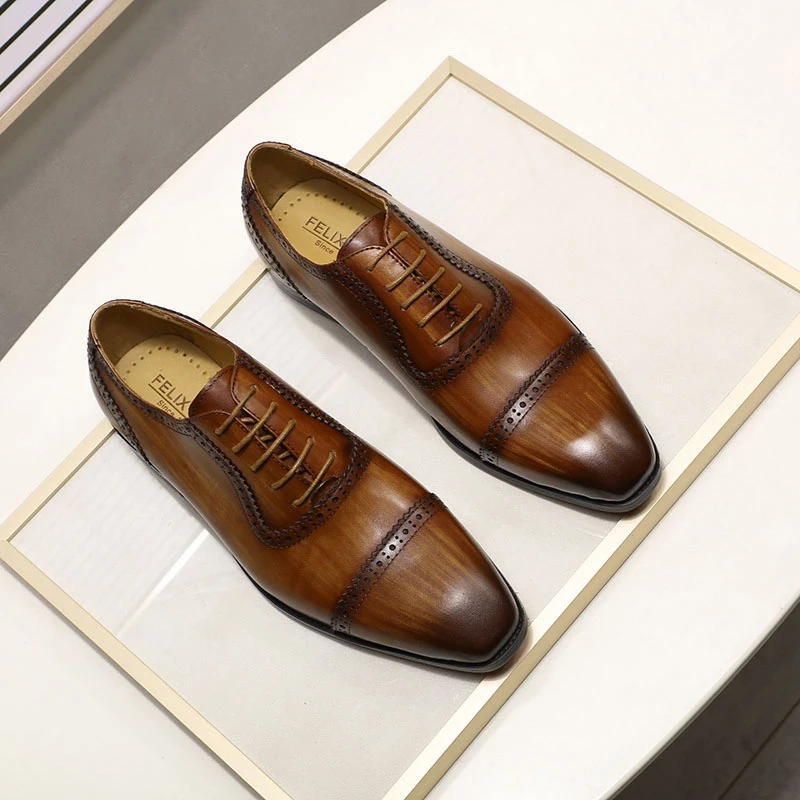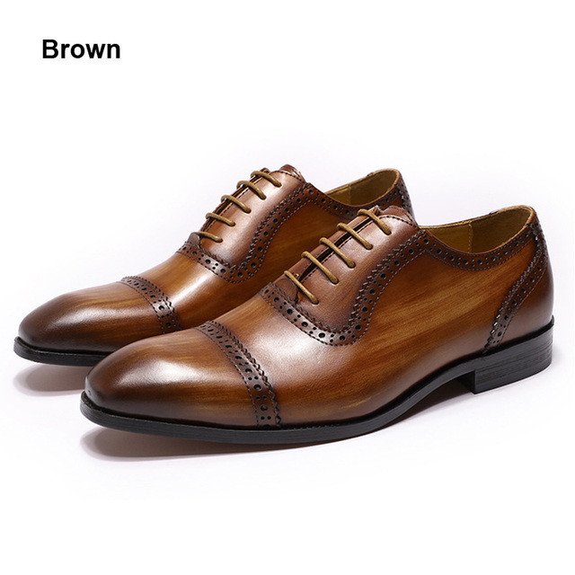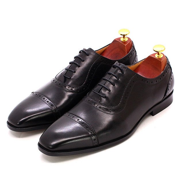 Classique hommes chaussures habillées en cuir de vachette véritable à lacets casquette orteil richelieu Oxford bureau affaires mariage costume formel chaussures pour hommes