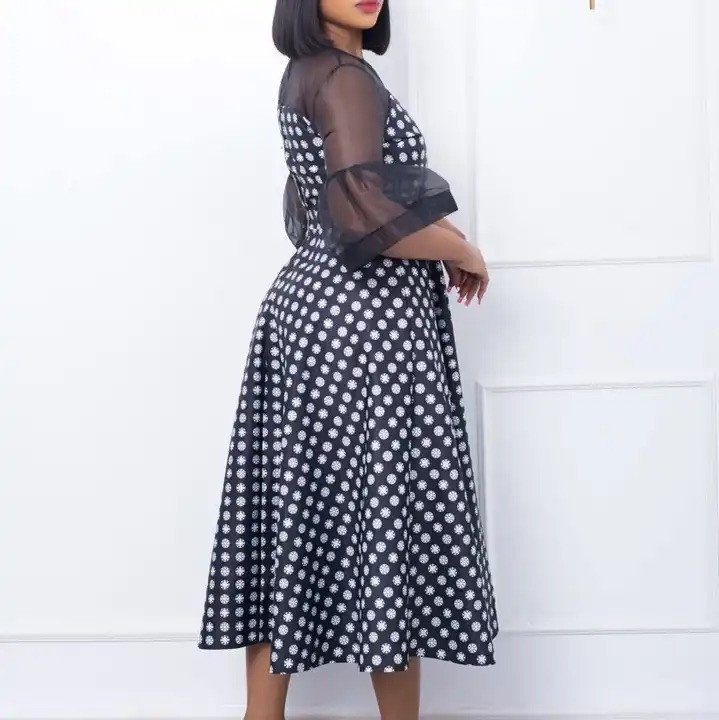 D3137 nouvelle mode automne vêtements pour femmes, robe d'affaires sexy en maille transparente manches évasées, robes de carrière, robe de bureau pour dames. Cameroun style.
